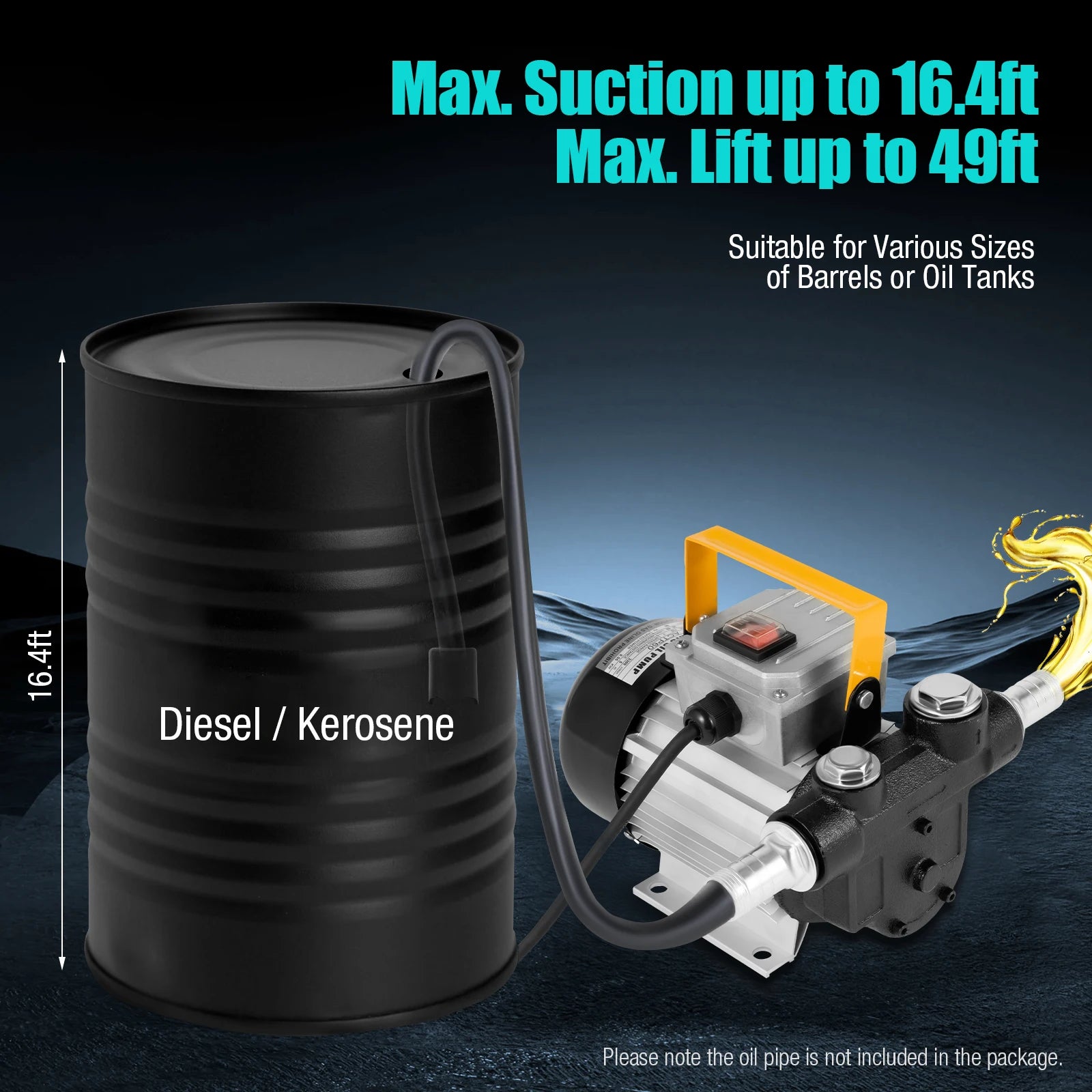- Powerful performance reaches up to 60 L/min (15.85 gal/min) with up to 49 ft of lift, ideal for bulk transfers.