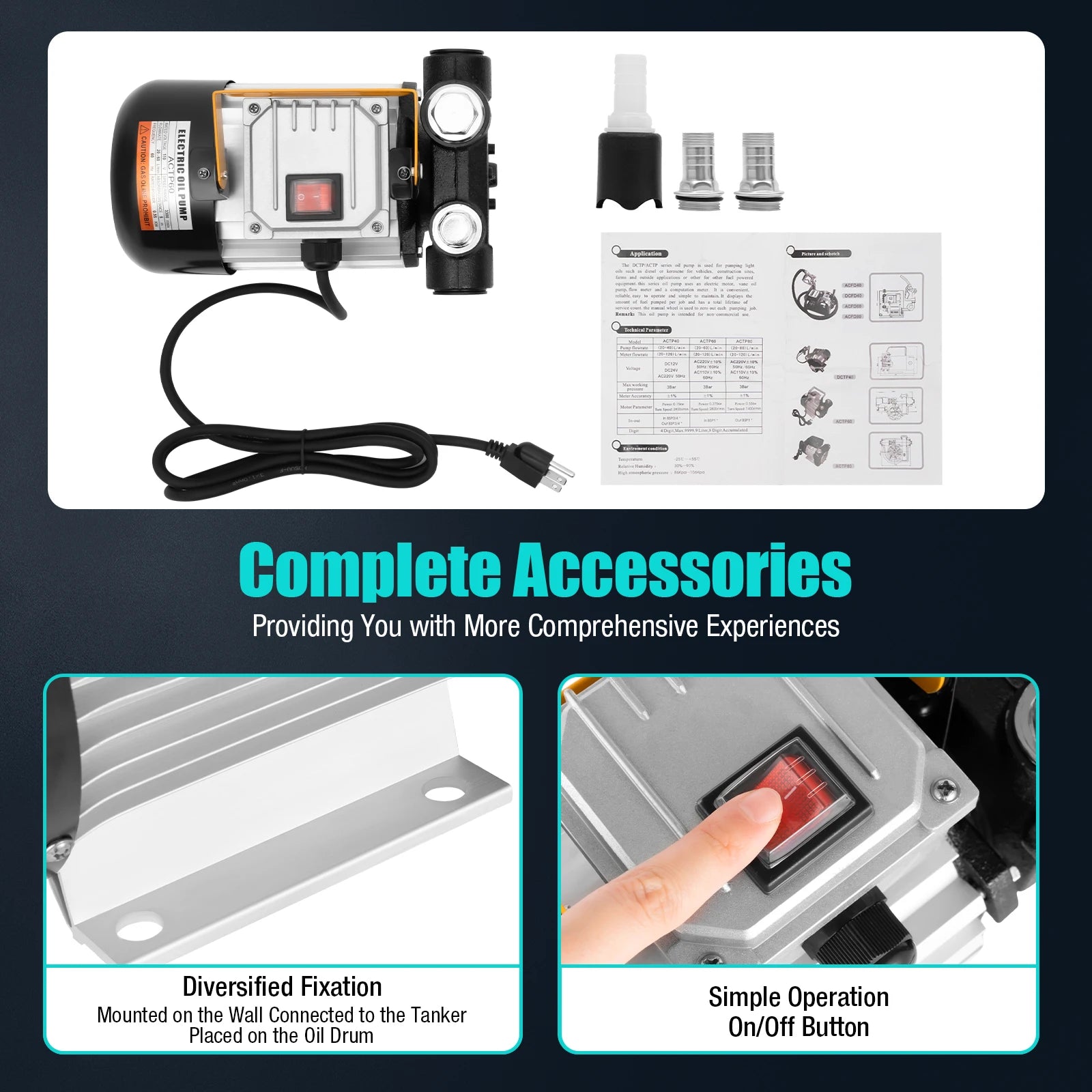 The ACTP60 110V Electric Oil Transfer Pump Self Priming 16 GPM is built to move oils quickly and safely, with a compact, durable design for tough jobs, for DIY projects and professional use.