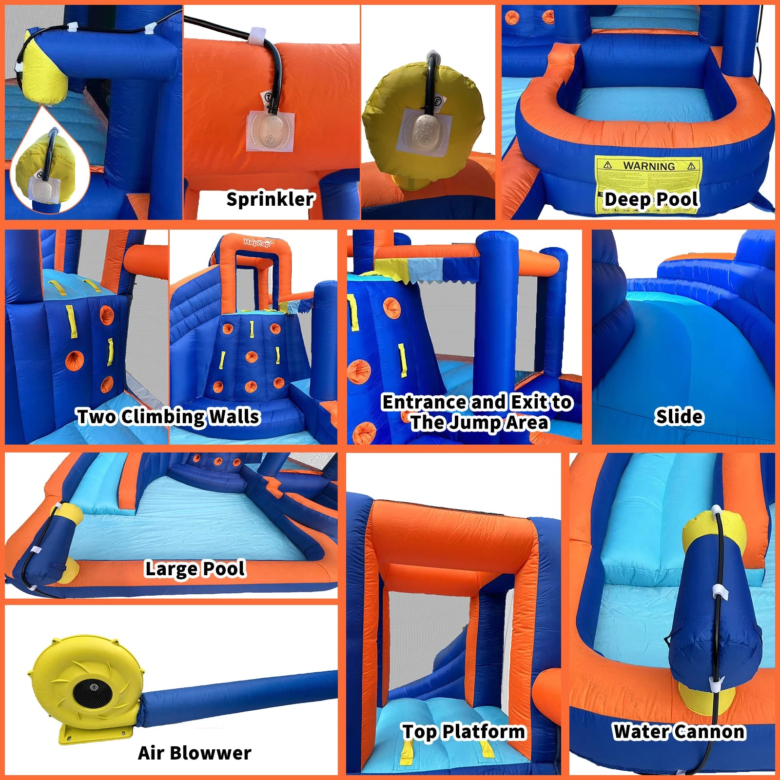 - Five integrated zones let you host a slide, climb, jump, and splash experience in one safe, connected play space.