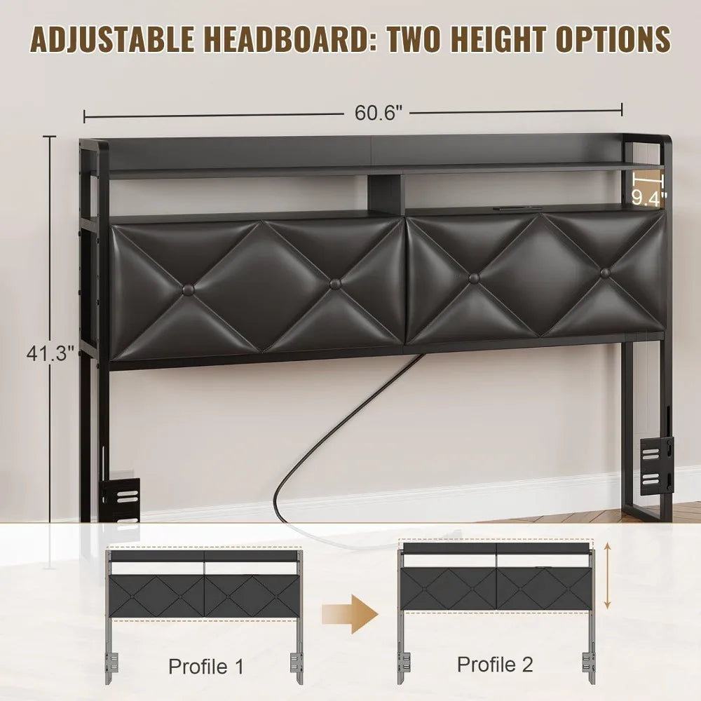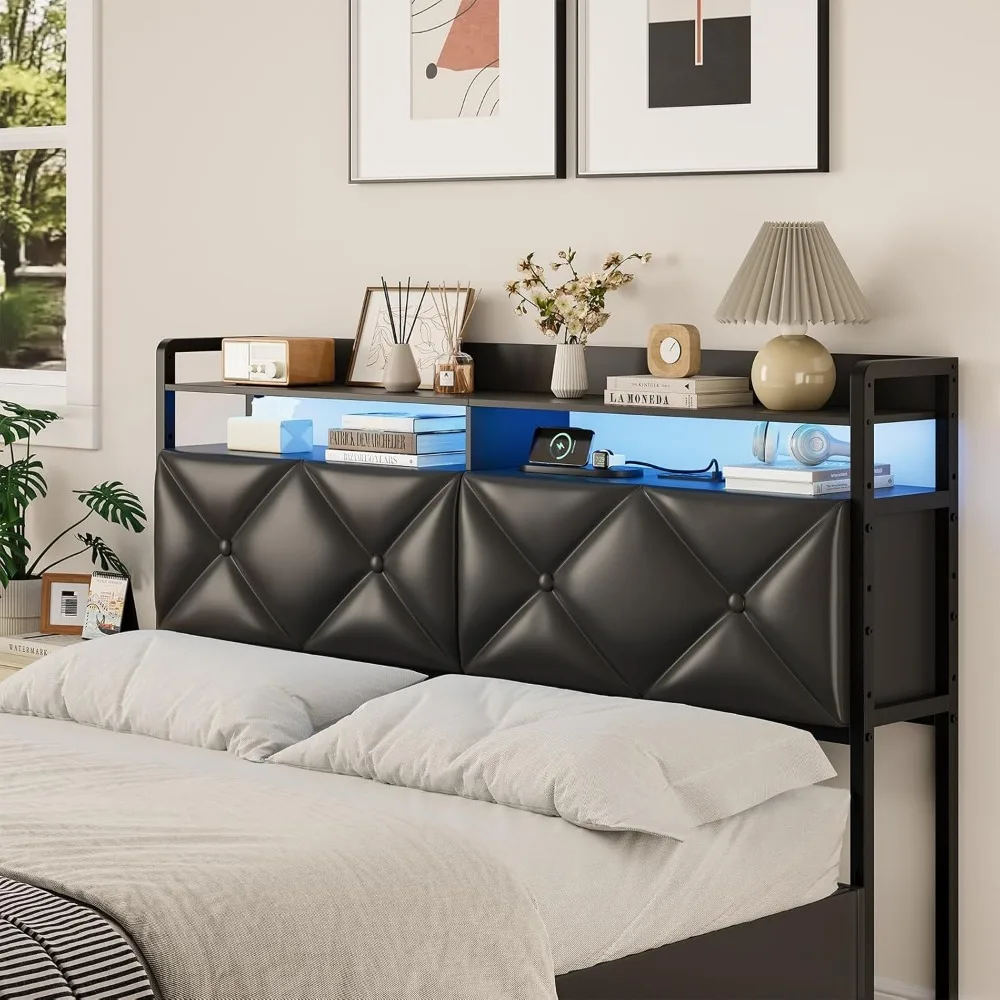 - Two-Tier Shelf and Hidden Storage: Queen size headboard features open shelving for organizing everyday items like phones, books, and alarms. A spacious hidden storage compartment at the back adds flexibility, allowing you to store personal items securely and conveniently