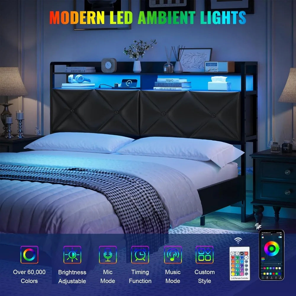 - LED Light and Charging Station: Our LED headboard features 2 AC outlets and 2 USB ports for convenient device charging. Its adjustable RGB light strip, controlled by remote, allows you to customize color, brightness, and mode, creating a relaxing atmosphere or serving as a night light
