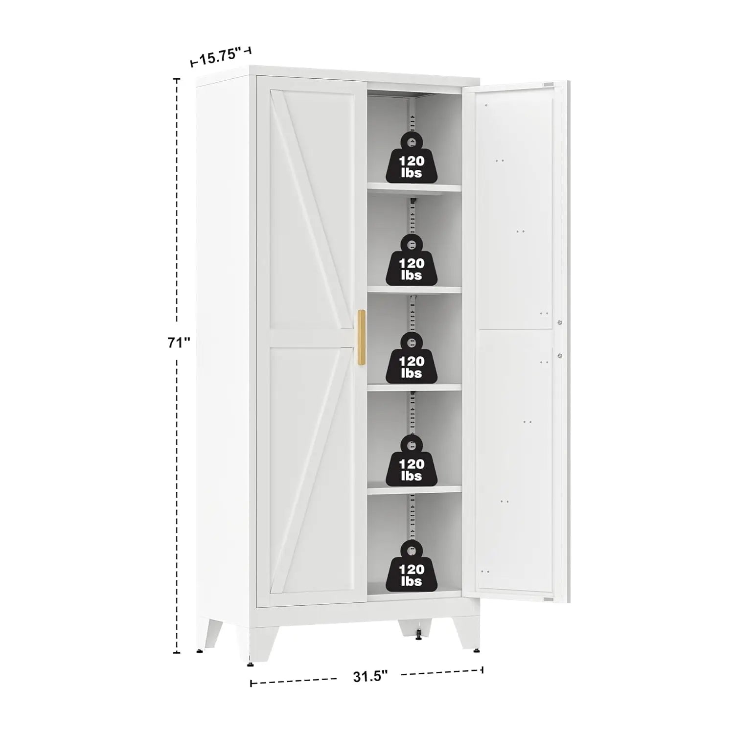 - A space‑saving vertical design with magnetic doors and gold handles keeps kitchens, pantries, or workshops neat, accessible, and stylish.