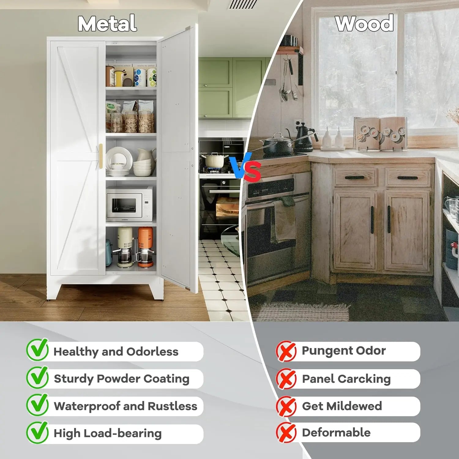 Metal Kitchen Pantry Storage Cabinet With Adjustable Shelves