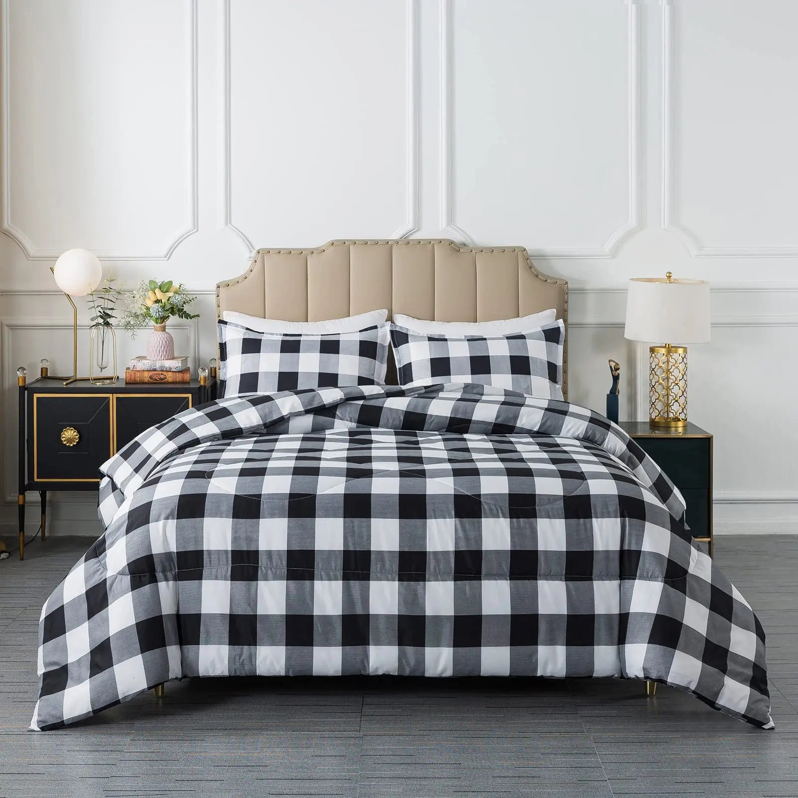 Jiangsu Plaid Duvet Cover Set With 2 Pillow Shams Premium