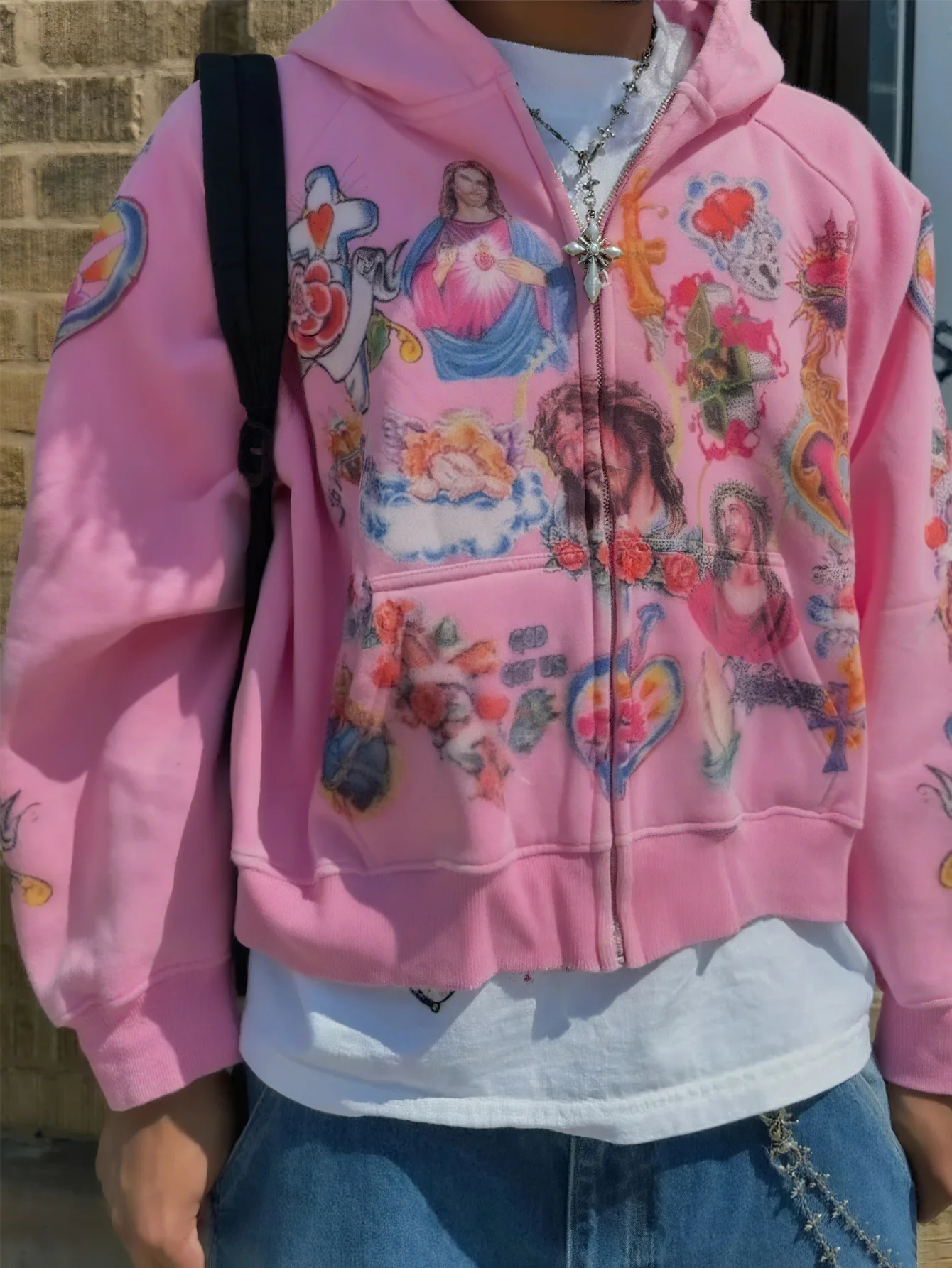 Women's Gothic Hoodies Fashion Harajuku Streetwear Jesus Printing Graffiti Pullover